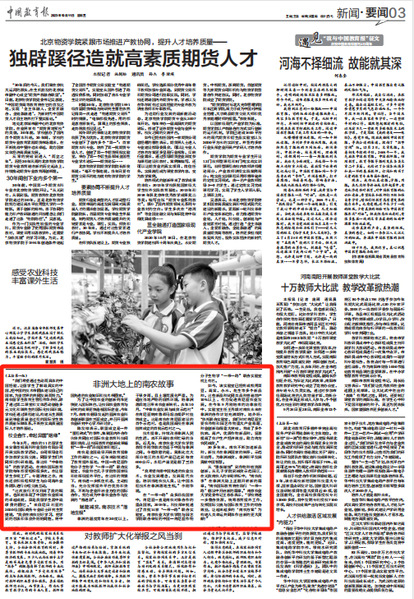從“番茄嫁接”到作物種植資源創新,從孔子學院到減貧示范園區,在無數南農人的辛勤耕耘中,“南農故事”在非洲大陸上正翻開嶄新的篇章。“南農國際教育將在踐行‘一帶一路’倡議中開啟新的篇章。”南京農業大學黨委書記王春春表示,“學校將進一步整合資源,統籌教育援外工作,發揮國際交流與國際教育工作的綜合效益,讓越來越多的‘南農方案’為構建人類命運共同體作出新的更大貢獻!”