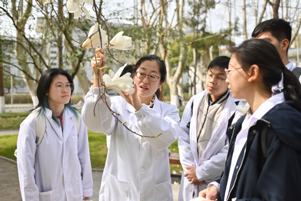 “垂柳的繁殖需要借助風的力量,但風是個不靠譜的‘紅娘’,垂柳便用數量龐大的微小花朵取代艷麗的花朵,雄花密集生長形成葇荑花序,輕盈的花粉可隨風飄散……”陽春三月,南京農業大學植物學課教學團隊劉宇婧副教授正在校園里向同學們介紹垂柳的“生存智慧”。