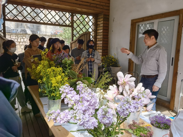 “大自然開什么花,我們就上什么課。”實驗員劉琳莉老師是教學團隊的“植物獵人”,幫助團隊收集花卉標本。“我們會根據劉老師的花期情報,靈活調整教學日歷,充分滿足學生自主實驗觀察的材料之需?!眲⒂铈赫f。在學校教學科研基地看梨樹傳粉,在校園里觀察薔薇科的花開花落,在紫金山感受生物多樣性,在顯微鏡下理解植物的自交不親和,利用大自然的素材創作植物拼貼畫……劉老師和同學們一起,把植物學課“搬”進大自然,又把大自然“請”回實驗室。