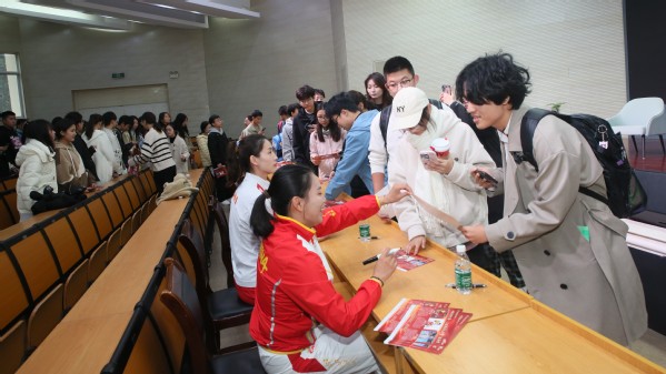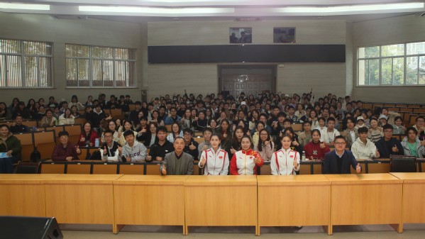 提問環節中,同學們最感興趣的是她們三位在走向賽場前艱苦的訓練過程中如何克服技術瓶頸、如何面對競爭壓力、如何調適心態等備戰問題。三位運動員也都通過自己的親身經歷和體驗一一作了回答。同時,也給當代大學生提出了加強鍛煉,提高身心素質、為未來發展打下良好基礎的建議和意見。