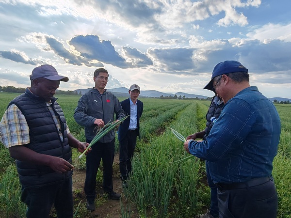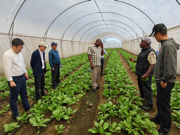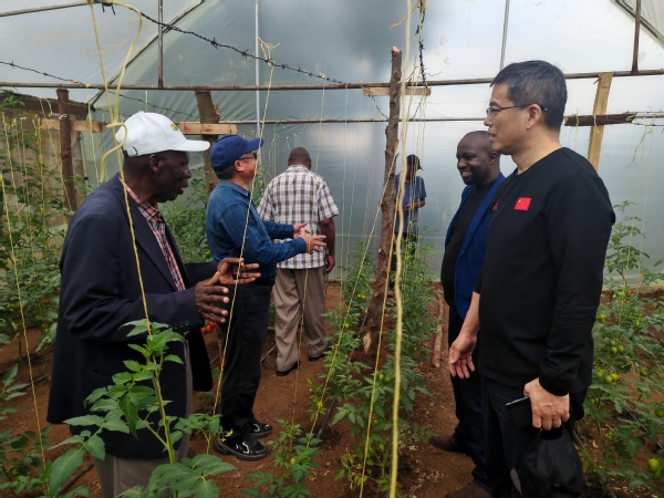 今年11月,位于肯尼亞納庫魯郡巴哈提社區馬坦吉提薩村的全球首個中非農業發展與減貧示范村成功入選“全球減貧最佳案例”。11月26日,王源超一行專門走訪示范村示范戶詹姆斯·麥納(James Maina)一家,聽取我校園藝學院援非專家劉高瓊教授的詳細介紹,了解我校在番茄嫁接、糧用豆新品種“切啦壟”的種植推廣、土壤改良、園藝作物病蟲害防治等一系列“南農技術”在助力非洲農業發展方面的主要做法,以及我校承擔國際農業發展基金“小而美”項目在減貧示范村的實施成效,并與當地村民親切交談。