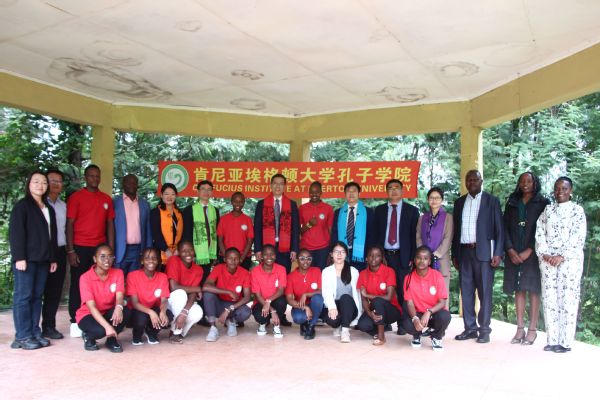 該校學生及我校孔子學院中文班學生為代表團獻上了精心準備的節目。他們載歌載舞,用中肯兩國語言演繹著對中國客人的喜愛和歡迎。