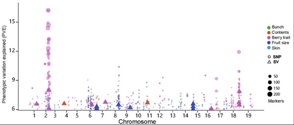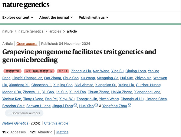 近日,我校房經(jīng)貴教授團(tuán)隊(duì)與中國(guó)農(nóng)業(yè)科學(xué)院深圳農(nóng)業(yè)基因組研究所(嶺南現(xiàn)代農(nóng)業(yè)科學(xué)與技術(shù)廣東省實(shí)驗(yàn)室深圳分中心)周永鋒團(tuán)隊(duì)在《自然·遺傳學(xué)(Nature Genetics)》上合作發(fā)表了題為“Grapevine pangenome facilitates trait genetics and genomic breeding”的研究論文。該研究基于首個(gè)馴化葡萄Grapepan v1.0圖泛參考基因組的組裝,研究構(gòu)建了包含單核苷酸變異(SNP)、插入缺失變異(InDel)和結(jié)構(gòu)變異(SV)的葡萄基因型圖譜與重要育種性狀的表型圖譜。進(jìn)一步通過系統(tǒng)的群體遺傳學(xué)與數(shù)量遺傳學(xué)挖掘,解析了葡萄復(fù)雜農(nóng)藝性狀的遺傳基礎(chǔ),定位了29個(gè)農(nóng)藝性狀相關(guān)的數(shù)量性狀基因位點(diǎn)(QTLs),并發(fā)現(xiàn)SVs對(duì)農(nóng)藝性狀缺失的遺傳力有顯著貢獻(xiàn)。通過整合機(jī)器學(xué)習(xí)算法、基因型圖譜、表型圖譜和數(shù)量遺傳學(xué)分析,該研究提出了葡萄多性狀的全基因組選擇育種模型,成功構(gòu)建了葡萄全基因組選擇育種體系。該體系將有效縮短育種年限、降低育種成本、提高育種效率,形成葡萄育種的新質(zhì)生產(chǎn)力,為我國(guó)快速突破葡萄種業(yè)瓶頸奠定了基礎(chǔ)。同時(shí),這一研究的方法和模型也為其它多年生作物的遺傳育種提供了參考和借鑒。