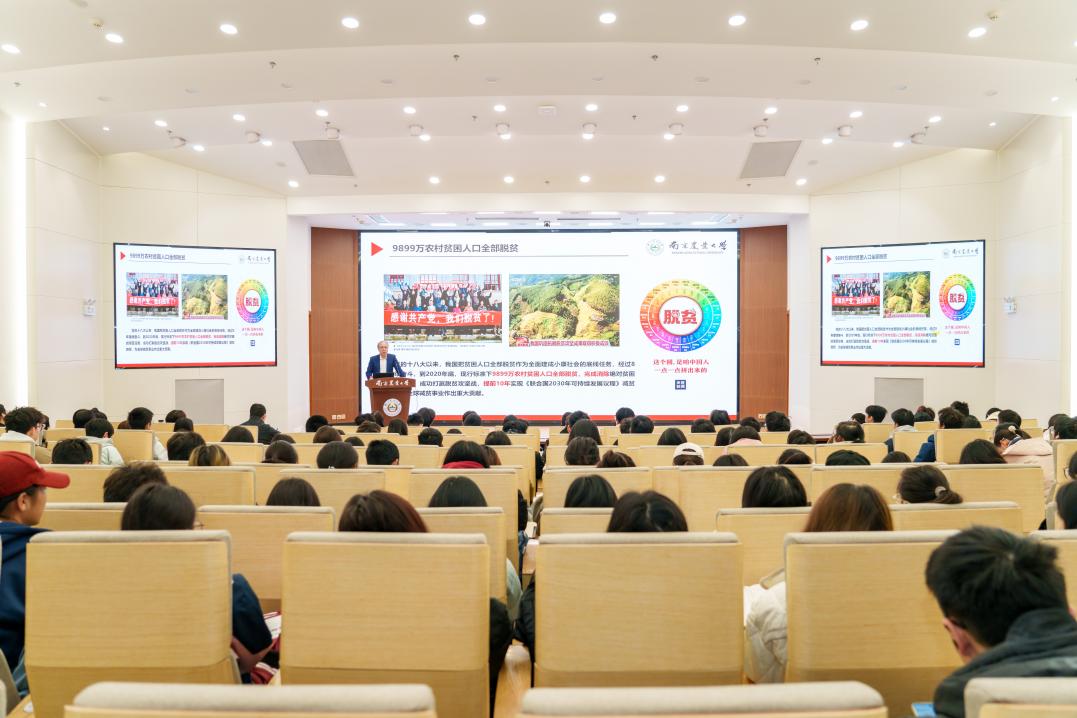 12月6日,副校長丁艷鋒走進(jìn)課堂,以“感悟強(qiáng)國建設(shè)偉大成就,書寫為中國式現(xiàn)代化挺膺擔(dān)當(dāng)?shù)那啻浩隆睘橹黝},為園藝學(xué)院近200名大一新生講授《形勢與政策》課,課程由園藝學(xué)院黨委副書記石木舟主持。