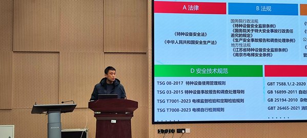 徐立兵代表江北新區(qū)市場監(jiān)督管理局發(fā)表講話,他指出特種設備安全規(guī)范管理對于學校和新區(qū)的發(fā)展都至關(guān)重要,要落實安全主體責任,提升管理水平和風險防范意識,為高質(zhì)量發(fā)展筑牢安全防線。南京市鍋爐壓力容器檢驗研究院曹明和南京市特種設備安全監(jiān)督檢驗研究院肖昀分別就壓力容器和電梯等特種設備安全使用管理進行了培訓,并深入解讀了相關(guān)法律法規(guī)以及安全標準,指導參會人員如何依法依規(guī)落實特種設備管理責任。