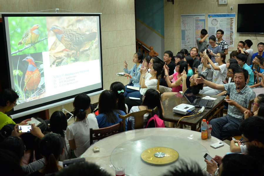 2016年,高國(guó)富副教授在黃山浮溪村為學(xué)生講解鳥(niǎo)類(lèi)識(shí)別方法