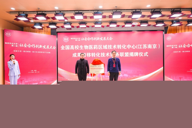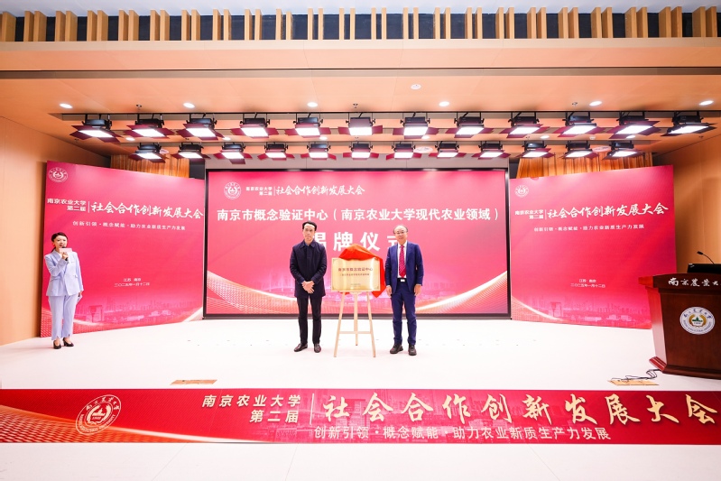 會上,南京農業大學黨委常委、副校長丁艷鋒,南京市科技局副局長王愿華共同為南京市概念驗證中心(南京農業大學現代農業領域)揭牌。南京農業大學前沿交叉研究院院長竇道龍、全國高校生物醫藥區域技術轉移轉化中心常務副主任闞蘇立共同為全國高校生物醫藥區域技術轉移轉化中心(江蘇南京)成果轉移轉化技術服務聯盟揭牌。