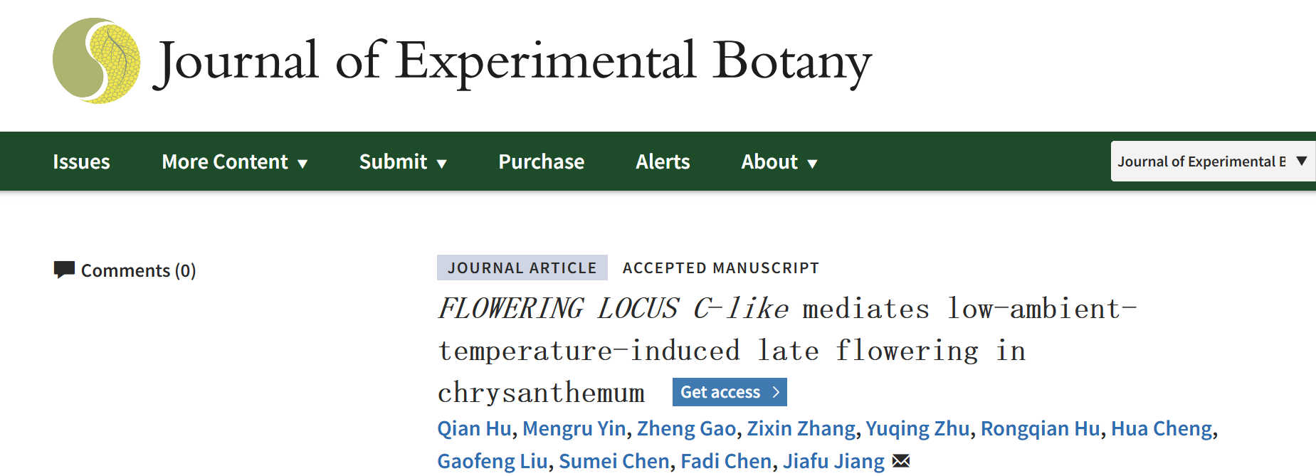 近期,南京農(nóng)業(yè)大學(xué)園藝學(xué)院菊花遺傳與種質(zhì)創(chuàng)新團(tuán)隊(duì)在《Journal of Experimental Botany》在線發(fā)表了題為“FLOWERING LOCUS C-like mediates low-ambient-temperature-induced late flowering in chrysanthemum”的研究論文,揭示了菊花CmFLC-like介導(dǎo)低溫抑制菊花開花的分子機(jī)制。