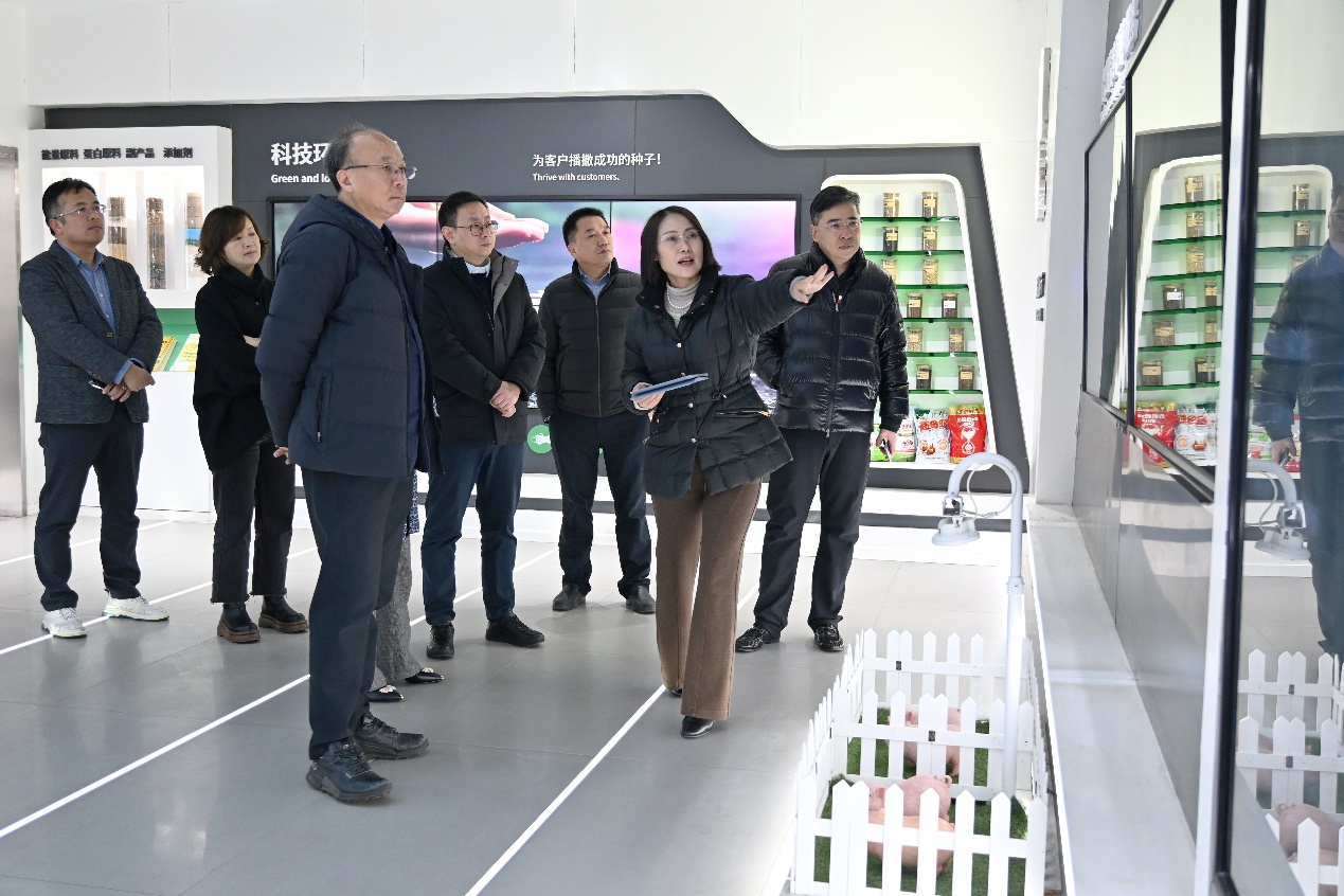 在安佑集團研究院副院長劉春雪的引導下,丁艷鋒一行參觀了安佑展示廳,全面了解了集團從初創至今的發展歷程、全產業鏈布局及未來戰略規劃。劉春雪重點介紹了安佑在精準營養研發、環保飼料技術、智能化養殖系統等領域的技術成果,展現了安佑以科技驅動行業升級的堅定步伐。