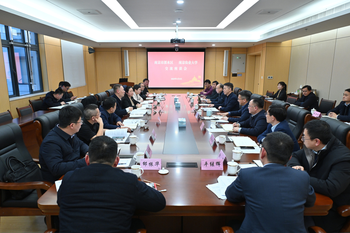3月5日下午,溧水區委書記張蘊,區委副書記、區長高軍玲一行來校調研,深入推進校地合作,共商雙方高質量發展。校黨委書記王春春,校長陳發棣,副校長丁艷鋒、單正豐等出席座談交流。會議由丁艷鋒主持。