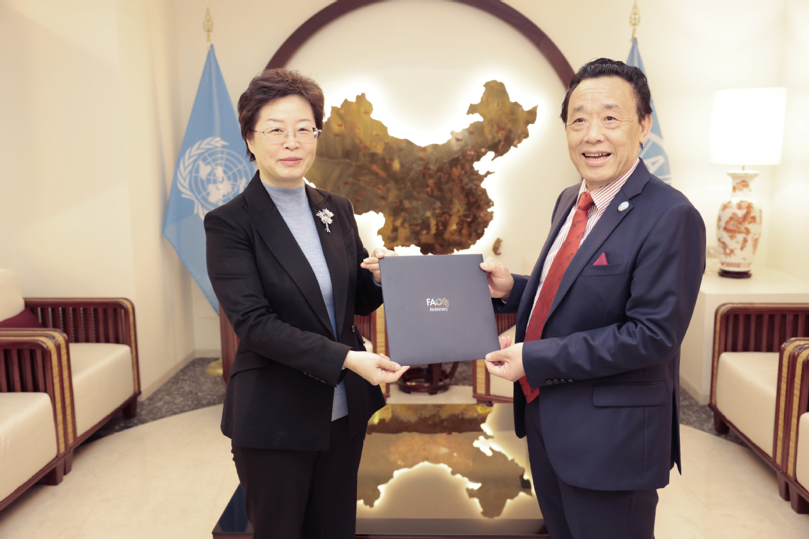 聯合國糧農組織總干事屈冬玉在位于羅馬的糧農組織總部會見代表團。屈冬玉高度評價南京農業大學在歷史上為糧農組織的籌建和發展做出的重要貢獻,感謝學校為糧農組織培養了一大批優秀的官員和工作人員,希望雙方進一步加強合作,積極響應聯合國可持續發展目標,攜手為人類更美好的未來做出貢獻。朱艷介紹了南京農業大學與糧農組織的合作情況,期待圍繞糧農組織“四個更好”理念(更好生產、更好營養、更好環境、更好生活)和學校建設農業特色世界一流大學發展目標,雙方攜手開展更為全面、深入、有影響力的交流與合作,并歡迎屈總干事未來訪問南京農業大學。