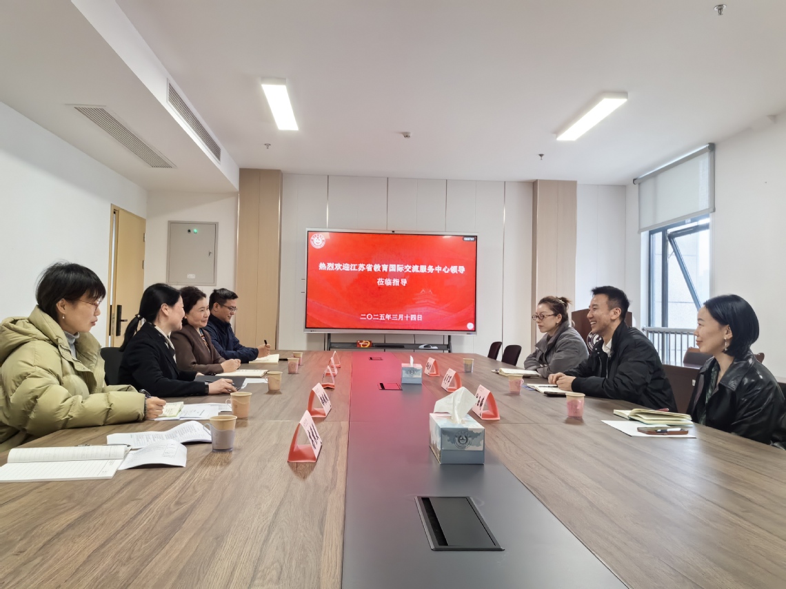 3月14日上午,江蘇省教育國際交流服務(wù)中心(蘇教國際)副主任閻宇軍、科長陸玉婷、酈曉典一行來訪,就學生境外學習項目開展調(diào)研交流。我校教務(wù)處處長曹愛忠、副處長胡燕及教務(wù)運行科相關(guān)人員參加座談。