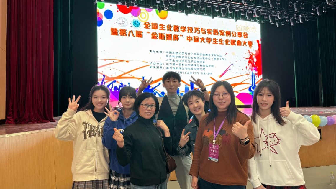 3月22日,由中國生物化學與分子生物學會教育專業分會、山東生物化學與分子生物學會等主辦的第八屆“金斯瑞杯”中國大學生生化歌曲大賽在山東第一醫科大學舉行,南京農業大學生命科學學院“脂類代謝工廠”團隊以一曲改編版《Three steps》驚艷全場,從全國71所高校的73部作品中脫穎而出,一舉奪得全國一等獎。