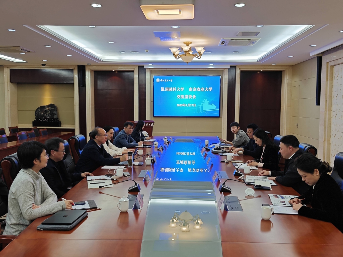 溫州醫科大學研究生工作部、發展規劃處、國際交流合作處負責同志及工作人員,我校校長辦公室、教務處、研究生院、國際與合作交流處、發展規劃與政策研究處負責同志及工作人員參加交流座談。