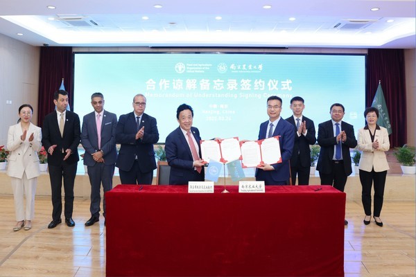 Qu Dongyu and NAU President Chen Fadi signed the MoU on behalf of FAO and the university. The agreement aims to enhance cooperation in key areas, including improving food security and nutrition, combating poverty and hunger to advance the UN Sustainable Development Goals, bolstering agricultural and food system transformation, strengthening South-South and Triangular Cooperation, and expanding internship and employment opportunities in international organizations for faculty and students.