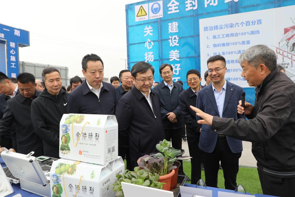 陳發(fā)棣在中心區(qū)建設(shè)工地,接待了滁州市“三看三比”巡回檢查團(tuán)一行,滁州市委書(shū)記吳勁,市長(zhǎng)胡春華等與陳發(fā)棣進(jìn)行了交流,雙方一同參觀了“南京農(nóng)業(yè)大學(xué)科技成果展”,聽(tīng)取了建設(shè)進(jìn)展匯報(bào),并就后續(xù)校地加深合作、推進(jìn)項(xiàng)目申報(bào)、科研成果轉(zhuǎn)化等交換了意見(jiàn)。