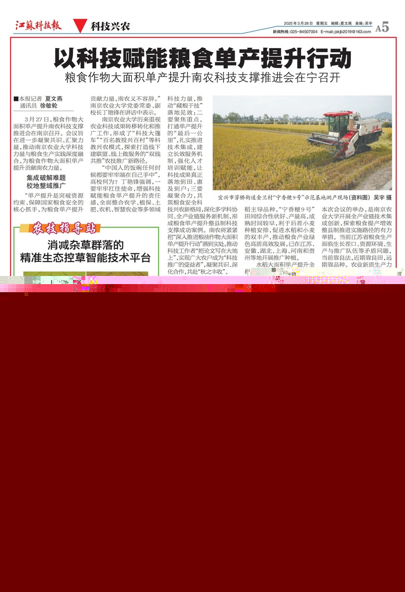 【江蘇科技報】以科技賦能糧食單產提升行動——糧食作物大面積單產提升南農科技支撐推進會在寧召開