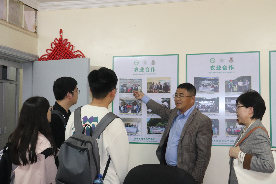 代表團一行首站走進埃格頓大學(xué)孔子學(xué)院辦公區(qū),中方院長劉玉濤系統(tǒng)介紹了孔院“中文+農(nóng)業(yè)”的辦學(xué)模式。從中文課程本土化設(shè)計到農(nóng)業(yè)技術(shù)培訓(xùn)體系,從科技減貧示范點到鄉(xiāng)村振興示范村建設(shè),十余年間累計為非洲培養(yǎng)千余名復(fù)合型人才。代表團成員表示,此次出行能夠進一步了解肯尼亞青年的對農(nóng)業(yè)技術(shù)學(xué)習(xí)和文化交流的需求,對“南農(nóng)-非洲”產(chǎn)學(xué)研合作的探索提供了新的方向。