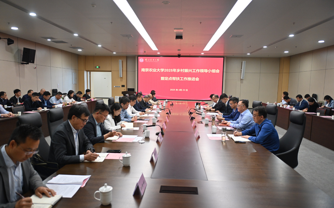 4月22日,南京農(nóng)業(yè)大學(xué)召開2025年鄉(xiāng)村振興工作領(lǐng)導(dǎo)小組會暨定點幫扶工作推進會。校黨委書記王春春、校長陳發(fā)棣,黨委常委、副校長丁艷鋒、單正豐、朱艷,黨委常委吳群等出席會議,我校鄉(xiāng)村振興工作領(lǐng)導(dǎo)小組全體成員單位負責(zé)同志等50余人參加會議。會議由丁艷鋒主持。