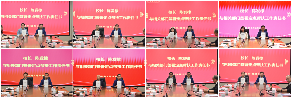 陳發(fā)棣分別與黨委組織部、工會、計財與國有資產(chǎn)處、社會合作處、校友總會辦公室、后勤保障處、繼續(xù)教育學(xué)院、資產(chǎn)經(jīng)營公司等單位負責(zé)同志就投入幫扶資金、引進幫扶資金、培訓(xùn)基層干部和技術(shù)人員、直接購買和幫助銷售脫貧地區(qū)農(nóng)產(chǎn)品等方面簽署了目標責(zé)任書,強調(diào)要加強定點幫扶各項任務(wù)的高質(zhì)量推進和落實。
