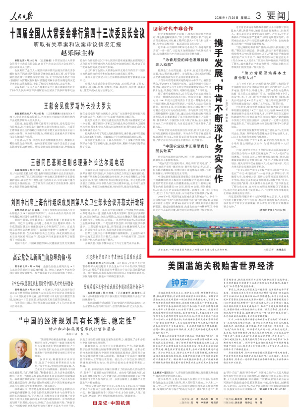中肯持續加強教育培訓等能力建設合作,充分利用企業、院校、科研機構等搭建的各類平臺培養人才,以人才紅利助力當地現代化發展。