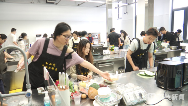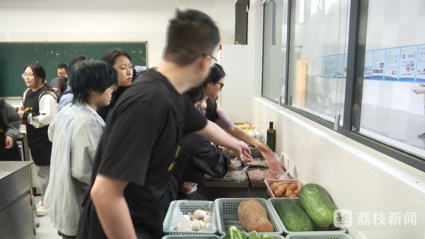 實驗室像是一個巨型廚房,擺放著各類廚房用具和食材。這一堂課,要同學們設計一日三餐減脂食譜并完成烹飪。為此,一周前同學們就開始了調研和準備。