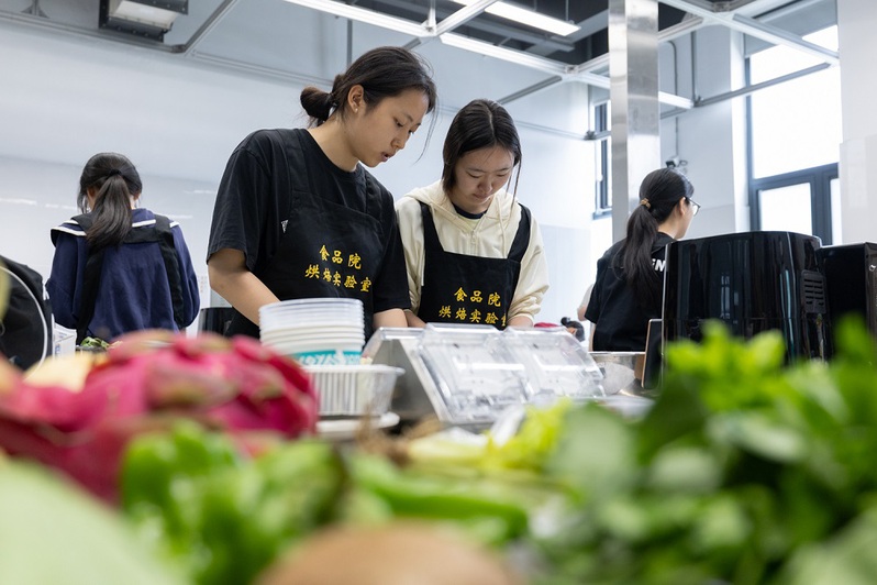 5月9日,南京農業大學食品科技學院的實驗室內,飄出陣陣“飯香”。西蘭花與三文魚的清香、糙米飯的溫熱氣息、檸檬汁的酸甜……鍋碗瓢盆的碰撞聲和學生們熱火朝天忙碌的“煙火氣”,取代了傳統課堂的安靜。