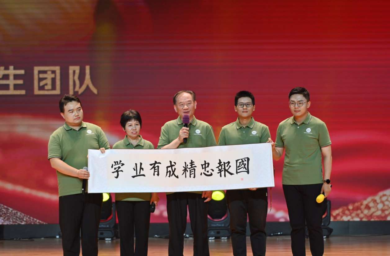 分享會現(xiàn)場,中國工程院院士、資源與環(huán)境科學學院沈其榮教授為學子們送上“學業(yè)有成精忠報國”親筆題字,并深情寄語現(xiàn)場師生。