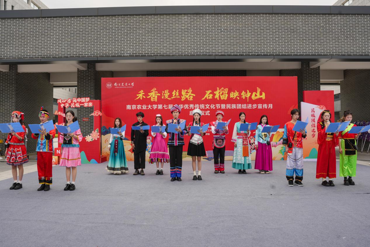 5月21日,南京農(nóng)業(yè)大學(xué)“禾香漫絲路·石榴映鐘山”第七屆中華優(yōu)秀傳統(tǒng)文化節(jié)暨民族團結(jié)進步宣傳月啟動儀式在濱江校區(qū)教學(xué)樓北廣場舉行。校黨委副書記劉營軍,江北新區(qū)黨工委宣傳和統(tǒng)戰(zhàn)部理論和文明辦主任史一平,各學(xué)院副書記、校民族宗教工作領(lǐng)導(dǎo)小組成員單位老師、輔導(dǎo)員和學(xué)生代表參與本次活動。
