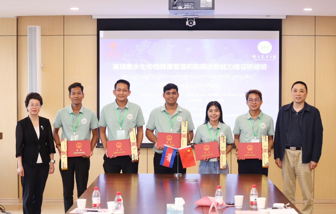 5月14日至27日,由商務(wù)部主辦“柬埔寨水生動物健康管理和疾病診斷能力建設(shè)研修班”在我校舉行。副校長朱艷、江蘇省商務(wù)廳對外投資和經(jīng)濟合作處副處長孟剛、國際國教相關(guān)負責同志出席研修班相關(guān)活動。動物科技學院專家團隊為來自柬埔寨的25名農(nóng)林漁業(yè)部官員提供了專業(yè)培訓。
