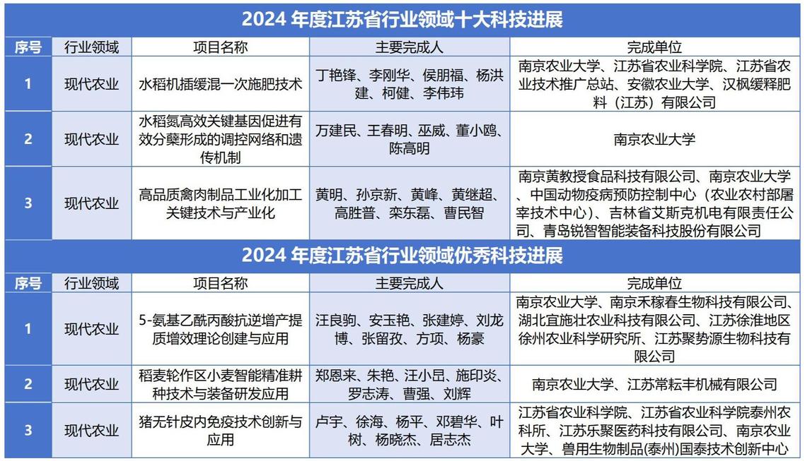 近日,江蘇省科協公布“2024年度江蘇省行業領域十大科技進展”入選名單,南京農業大學6項成果入選,入選總數居現代農業領域第一。其中以我校為第一完成單位,2項成果入選現代農業領域十大科技進展,2項成果入選現代農業領域優秀科技進展。