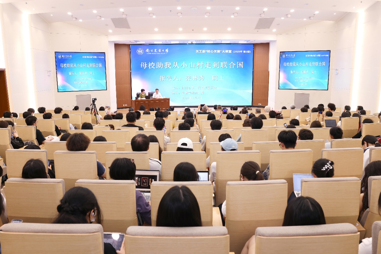 6月9日,南京農業(yè)大學關工委“秾心關愛”大講堂2025年第2期“院士回母校”報告會在衛(wèi)崗校區(qū)圖書館學術報告廳舉行。我校1982屆農林經(jīng)濟管理專業(yè)校友、聯(lián)合國環(huán)境署高級官員、發(fā)展中國家科學院院士張林秀作《母校助我從小山村走到聯(lián)合國》專題報告。校黨委常委、關工委常務副主任吳群,關工委常務副主任盛邦躍、副主任賈翠芳,離退休工作處、各二級關工委負責人,以及全校師生200余人聆聽報告。